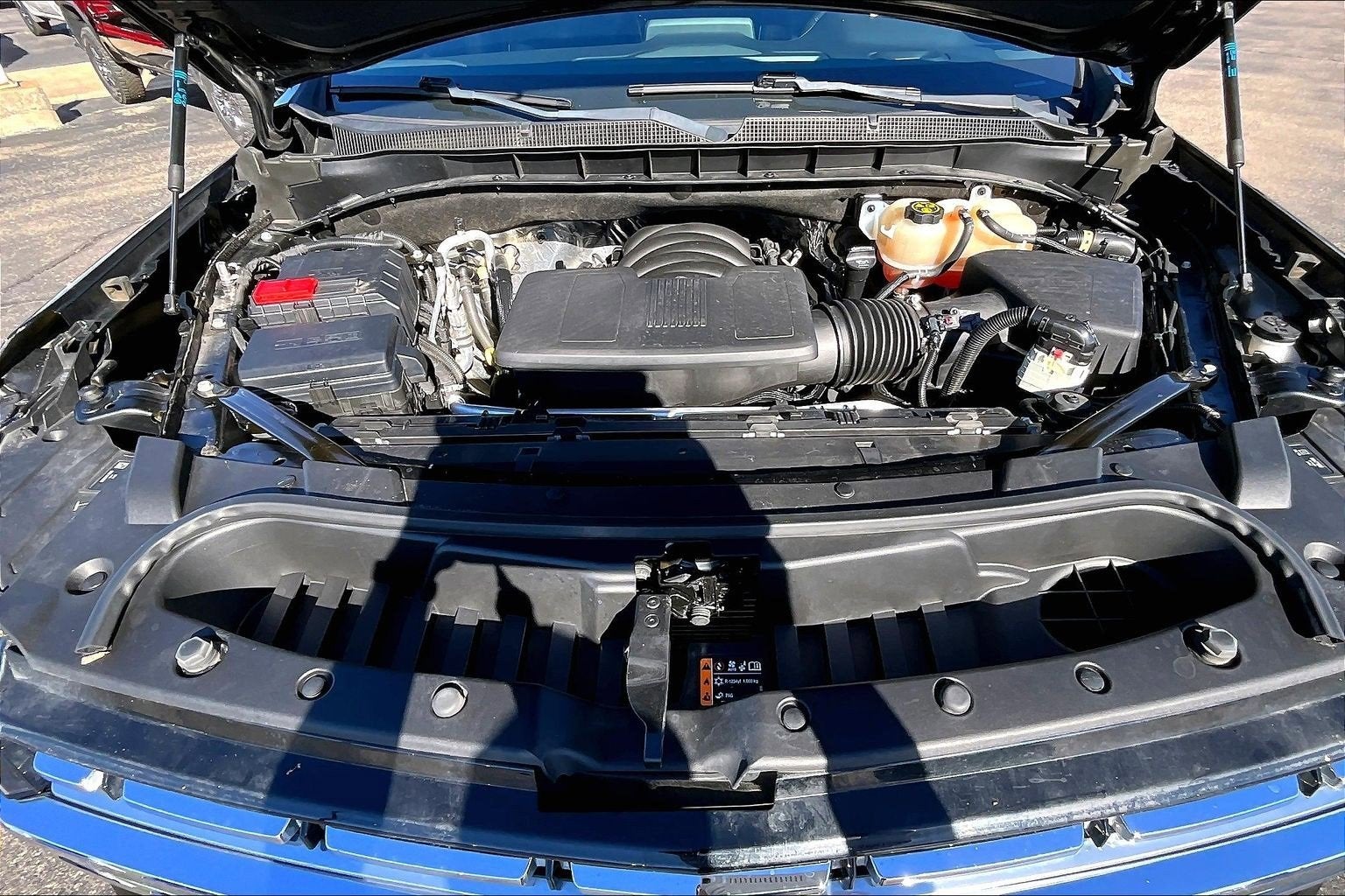 4WD, Jet Black Leather, 10 Speakers, 1st & 2nd Row Color-Keyed Carpeted Floor Mats, 1st, 2nd & 3rd Rows All-Weather Floor Liners (LPO), 2-Speed Active Electronic AutoTrac Transfer Case, 20 x 9 Polished Aluminum Wheels, 3.23 Rear Axle Ratio, 3rd Row 60/40 Power-Folding Split-Bench Seat, 3rd row seats: split-bench, 4-Wheel Disc Brakes, ABS brakes, Adaptive suspension, Air Conditioning, All-Weather Cargo Mat (LPO), Alloy wheels, AM/FM radio: SiriusXM with 360L, Apple CarPlay/Android Auto, Auto High-beam Headlights, Auto-dimming door mirrors, Auto-Dimming Inside Rear-View Mirror, Auto-dimming Rear-View mirror, Auto-leveling suspension, Automatic temperature control, Black Name Plates (LPO), Bose 10-Speaker Centerpoint Surround Audio Sys Ft, Brake assist, Bright Front & Rear Door Sill Plates, Bumpers: body-color, Chrome Door Handles w/Body-Color Strip, Chrome Mirror Caps, Color-Keyed Carpeting Floor Covering, Compass, Delay-off headlights, Driver & Front Outboard Passenger Airbags, Driver door bin, Driver vanity mirror, Dual Exhaust System, Dual front impact airbags, Dual front side impact airbags, Electronic Stability Control, Emergency communication system: OnStar and Chevrolet connected services capable, Enhanced Driver Information Center, Floor Console, Four wheel independent suspension, Front & Rear Black Bowtie Emblems (LPO), Front anti-roll bar, Front Bucket Seats, Front Center Armrest, Front dual zone A/C, Front High-Back Reclining Bucket Seats, Front reading lights, Fully automatic headlights, Garage door transmitter, Hands-Free Rear Power Programmable Liftgate, Heated & Ventilated Driver & Front Passenger Seats, Heated 2nd Row Outboard Seats, Heated door mirrors, Heated Driver & Front Passenger Seats, Heated front seats, Heated rear seats, Heated Steering Wheel, Heated steering wheel, Hill Descent Control, Illuminated entry, Illuminated Mirror Chevrolet Emblem (LPO), Infotainment Display, Lane Change Alert w/Side Blind Zone Alert, LED Daytime Running Lamps, Low tire pressure warning, Magnetic Ride Control Suspension, Memory seat, Memory Settings, Navigation System, Not Equipped w/4-Way Driver & Fr Pass Pwr Lumbar, Not Equipped w/Wireless Charging, Occupant sensing airbag, Outside Heated Power-Adjustable Mirrors, Outside temperature display, Overhead airbag, Overhead console, Panic alarm, Passenger door bin, Passenger vanity mirror, Perforated Leather Seat Trim, Power door mirrors, Power driver seat, Power Liftgate, Power passenger seat, Power Release 2nd Row Bucket Seats, Power steering, Power Tilt & Telescopic Steering Column, Power windows, Power-Retractable Assist Steps, Preferred Equipment Group 1LZ, Premium audio system: Chevrolet Infotainment 3 Premium, Radio: Chevrolet Infotainment 3 Premium System, Rain sensing wipers, Rear air conditioning, Rear anti-roll bar, Rear Cross Traffic Alert, Rear reading lights, Rear window defroster, Rear window wiper, Remote keyless entry, Remote Start, Roof rack: rails only, Safety Alert Seat, Security system, SiriusXM Radio w/360L, Speed control, Speed-sensing steering, Split folding rear seat, Spoiler, Steering wheel memory, Steering wheel mounted audio controls, Tachometer, Telescoping steering wheel, Tilt steering wheel, Traction control, Trip computer, Turn signal indicator mirrors, Universal Home Remote, Variably intermittent wipers, Ventilated front seats, Voltmeter, Wheels: 22 Multi-Spoke Gloss Black (LPO) (SRV), Wheels: 22 x 9 Steel Interim (LPO), Wireless Charging, Wrapped Steering Wheel, 4WD, Jet Black Leather. CARFAX One-Owner. Clean CARFAX. Odometer is 13542 miles below market average! 2023 Chevrolet Tahoe Black EcoTec3 5.3L V8 Premier 10-Speed Automatic with Overdrive 4WD