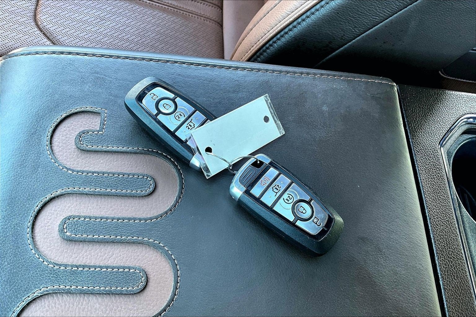 4WD, 22 Speakers, 26mm Engine Radiator, 360-Degree Camera w/Trailer Reverse Guidance, 3rd row seats: split-bench, 4-Wheel Disc Brakes, ABS brakes, Adjustable pedals, Advanced Cargo Manager, Air Conditioning, Alloy wheels, AM/FM radio: SiriusXM with 360L, Auto High-beam Headlights, Auto-dimming door mirrors, Auto-dimming Rear-View mirror, Automatic temperature control, Brake assist, Bumpers: body-color, Compass, Continuous Controlled Damping (CCD), Delay-off headlights, Driver door bin, Driver vanity mirror, Dual front impact airbags, Dual front side impact airbags, Electronic Stability Control, Emergency communication system: SYNC 4 911 Assist, Equipment Group 400A Standard Package, Exterior Parking Camera Rear, Four wheel independent suspension, Front anti-roll bar, Front Bucket Seats, Front Center Armrest, Front dual zone A/C, Front fog lights, Front reading lights, Fully automatic headlights, Garage door transmitter, Genuine wood console insert, Genuine wood dashboard insert, Genuine wood door panel insert, Hands-Free Foot-Activated Liftgate Removal (DISC), Heated door mirrors, Heated front seats, Heated rear seats, Heated steering wheel, Heated/Vent Prem Del Rio Lthr Fr Captain's Chairs, Heavy-Duty Trailer Tow Package, Illuminated entry, Integrated Trailer Brake Controller, Leather steering wheel, Low tire pressure warning, Memory seat, Navigation system: Connected Navigation, Occupant sensing airbag, Outside temperature display, Overhead airbag, Overhead console, Panic alarm, Passenger door bin, Passenger vanity mirror, Pedal memory, Power door mirrors, Power driver seat, Power Liftgate, Power moonroof, Power passenger seat, Power steering, Power windows, Pro Trailer Backup Assist, Radio data system, Radio: B&O Unleashed Sound System by Bang & Olufsen, Rain sensing wipers, Rear air conditioning, Rear anti-roll bar, Rear reading lights, Rear window defroster, Rear window wiper, Reclining 3rd row seat, Remote keyless entry, Second Row Power Windows Removal, Security system, SiriusXM w/360L, Speed control, Speed-sensing steering, Speed-Sensitive Wipers, Split folding rear seat, Spoiler, Steering wheel memory, Steering wheel mounted audio controls, SYNC 4 w/Enhanced Voice Recognition, Tachometer, Telescoping steering wheel, Tilt steering wheel, Traction control, Trip computer, Turn signal indicator mirrors, Variably intermittent wipers, Ventilated front seats, Voltmeter, Wheels: 22 6-Spoke Polished Aluminum, 4WD. CARFAX One-Owner. Clean CARFAX. 2023 Ford Expedition Infinite Blue Metallic Tinted Clearcoat EcoBoost 3.5L V6 GTDi DOHC 24V Twin Turbocharged King Ranch 10-Speed Automatic 4WD