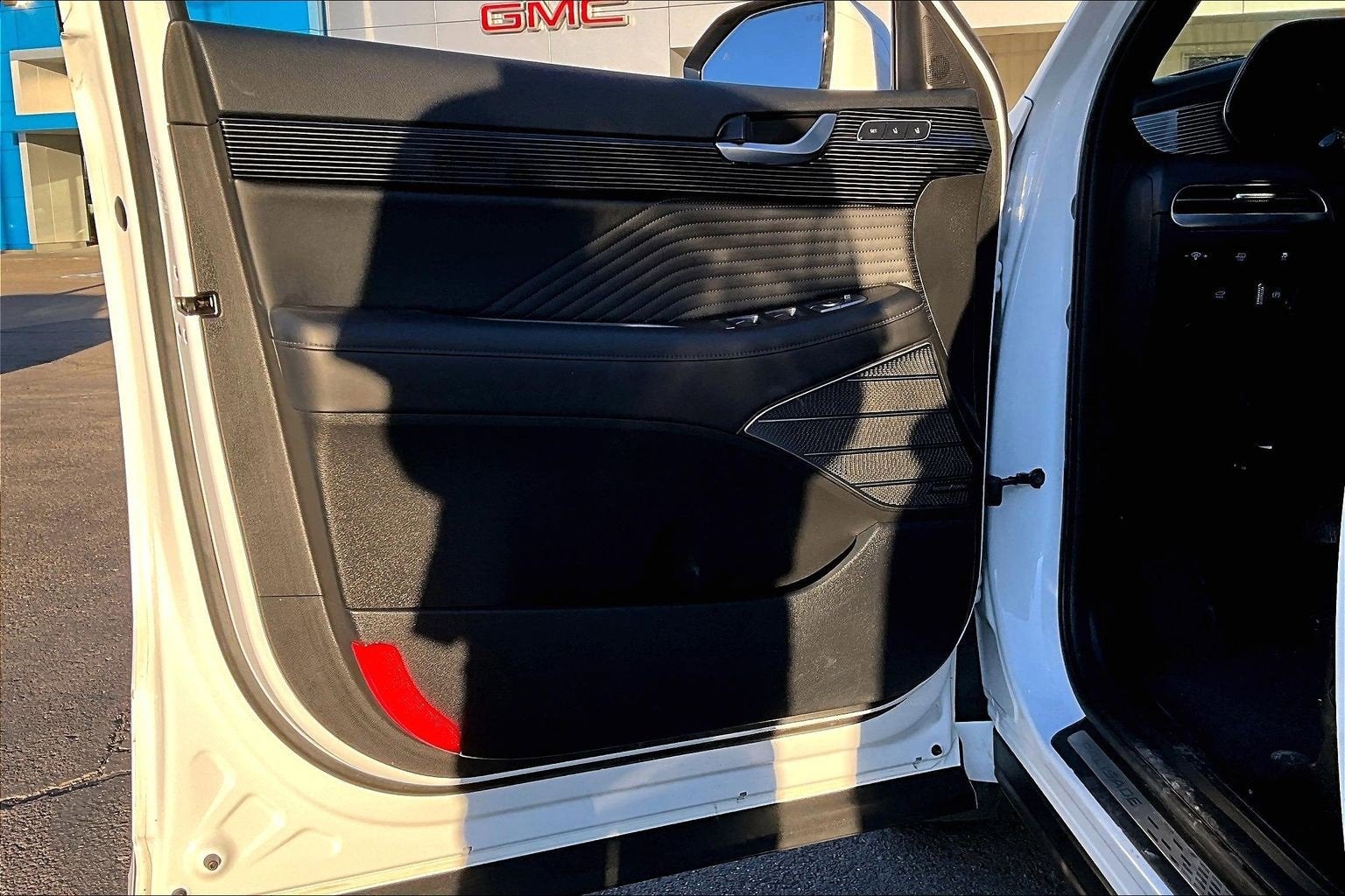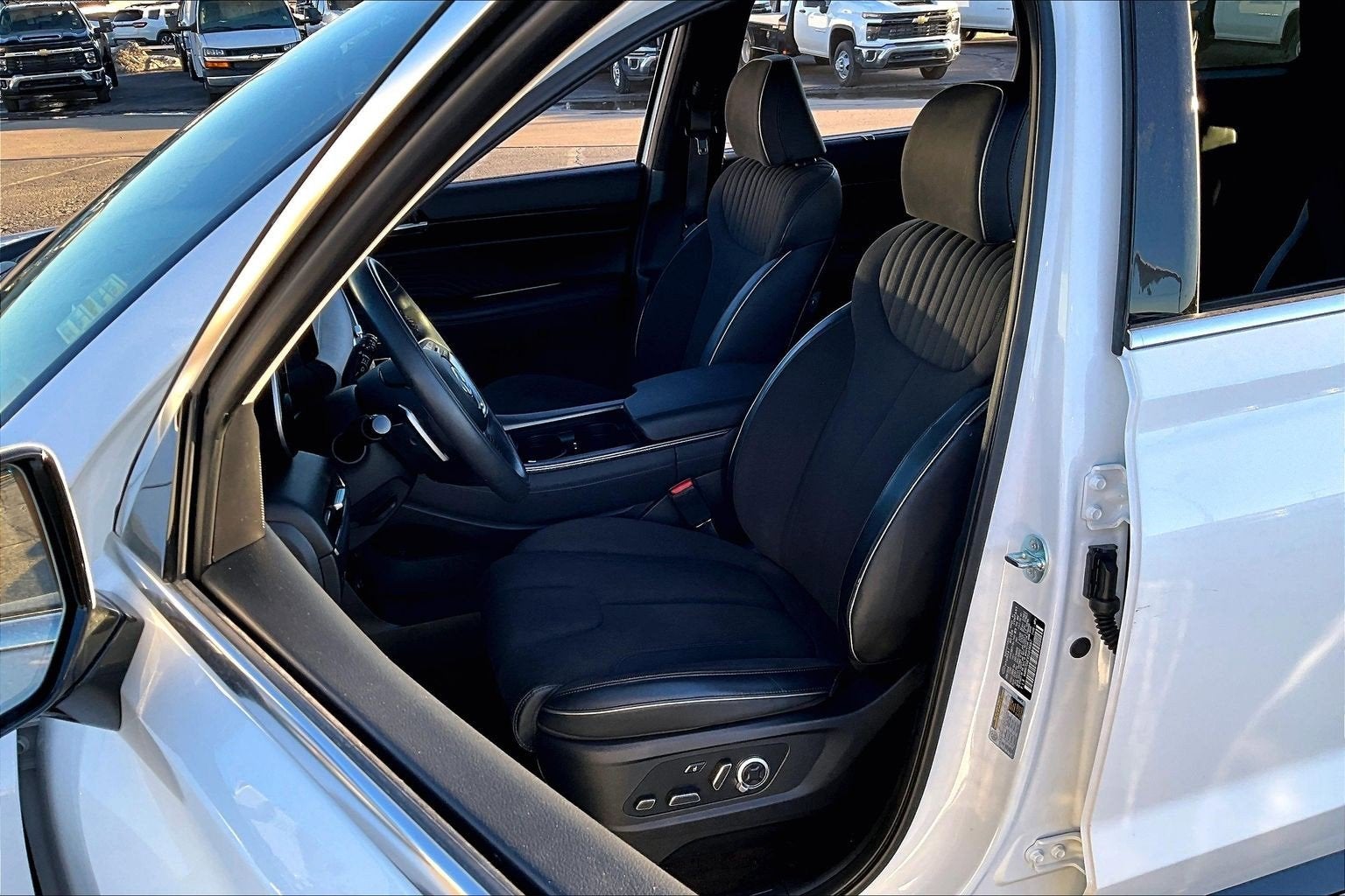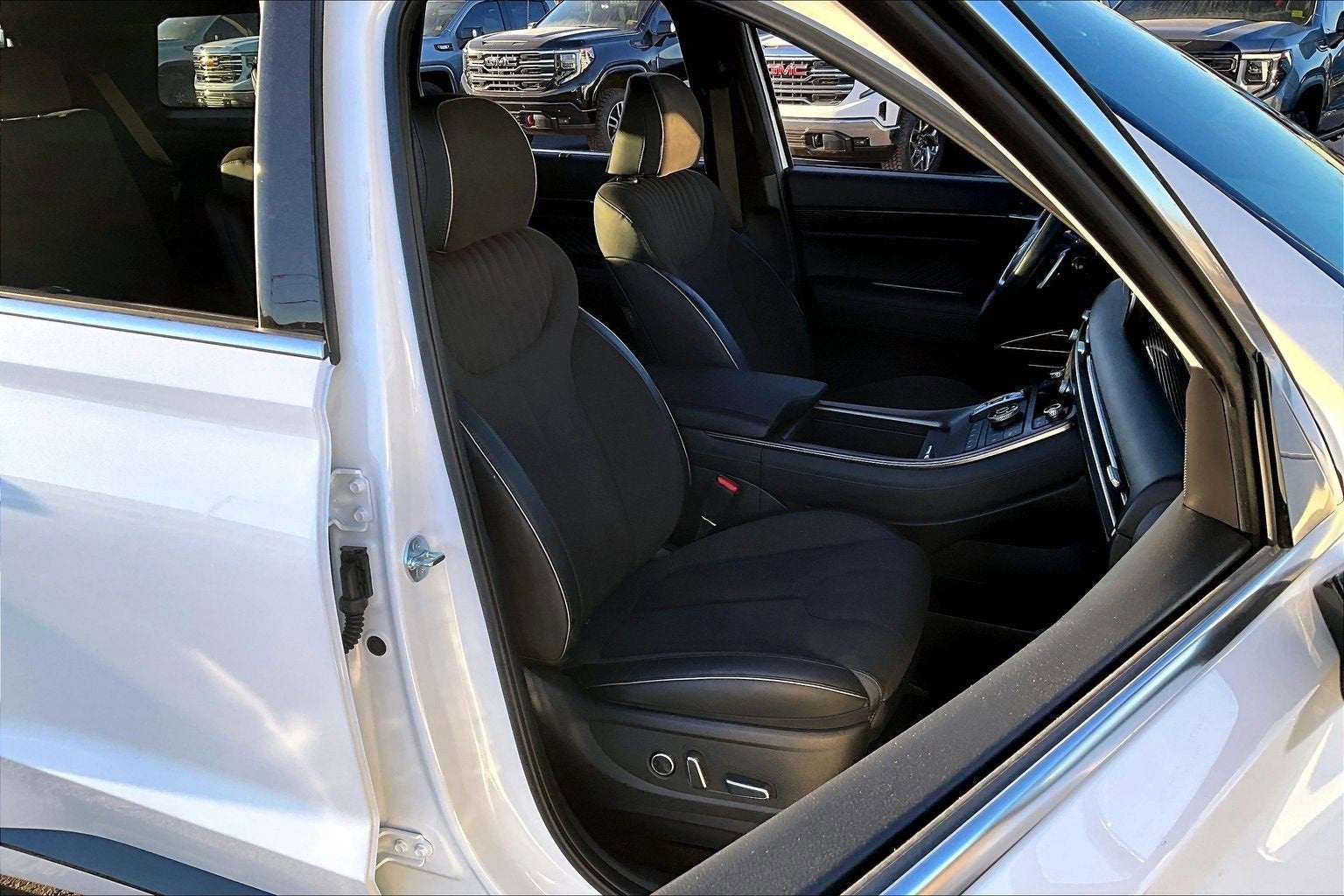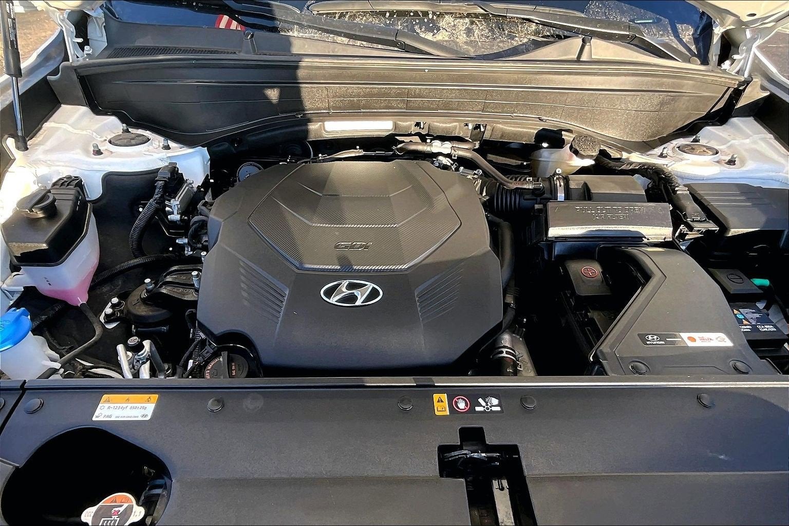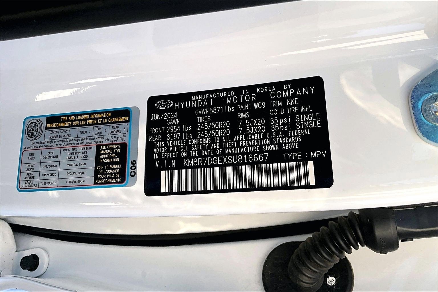 12 Speakers, 3rd row seats: split-bench, 4-Wheel Disc Brakes, ABS brakes, Air Conditioning, Alloy wheels, AM/FM radio: SiriusXM, Apple CarPlay & Android Auto, Auto High-beam Headlights, Auto-dimming door mirrors, Auto-dimming Rear-View mirror, Auto-leveling suspension, Automatic temperature control, Brake assist, Bumpers: body-color, Cargo Blocks, Cargo Cover, Cargo Tray, Carpeted Floor Mats, Compass, Delay-off headlights, Driver door bin, Driver vanity mirror, Dual front impact airbags, Dual front side impact airbags, Electronic Stability Control, Emergency communication system, Exterior Parking Camera Rear, First Aid Kit, Four wheel independent suspension, Front anti-roll bar, Front Bucket Seats, Front Center Armrest, Front dual zone A/C, Front reading lights, Fully automatic headlights, Garage door transmitter: HomeLink, harman/kardon® Speakers, Heads-Up Display, Heated & Ventilated Front Bucket Seats, Heated door mirrors, Heated front seats, Heated rear seats, Heated steering wheel, Illuminated entry, Knee airbag, Leather steering wheel, Low tire pressure warning, Memory seat, Microfiber Suede Seat Trim, Mudguards, Navigation System, Occupant sensing airbag, Option Group 01, Outside temperature display, Overhead airbag, Overhead console, Panic alarm, Passenger door bin, Passenger vanity mirror, Power door mirrors, Power driver seat, Power Liftgate, Power moonroof, Power passenger seat, Power steering, Power windows, Radio data system, Radio: AM/FM/MP3 Premium Audio System, Rain sensing wipers, Rear air conditioning, Rear anti-roll bar, Rear audio controls, Rear reading lights, Rear side impact airbag, Rear window defroster, Rear window wiper, Reclining 3rd row seat, Remote keyless entry, Roadside Assistance Kit, Roof rack, Security system, Speed control, Speed-sensing steering, Split folding rear seat, Spoiler, Steering wheel mounted audio controls, Tachometer, Telescoping steering wheel, Tilt steering wheel, Traction control, Trip computer, Turn signal indicator mirrors, Variably intermittent wipers, Ventilated front seats, Ventilated rear seats, Wheel Locks, Wheels: 20 x 7.5J Black Liquid Paint Alloy. CARFAX One-Owner. 2025 Hyundai Palisade Hyper White V6 Calligraphy Night Edition 8-Speed Automatic with SHIFTRONIC AWD